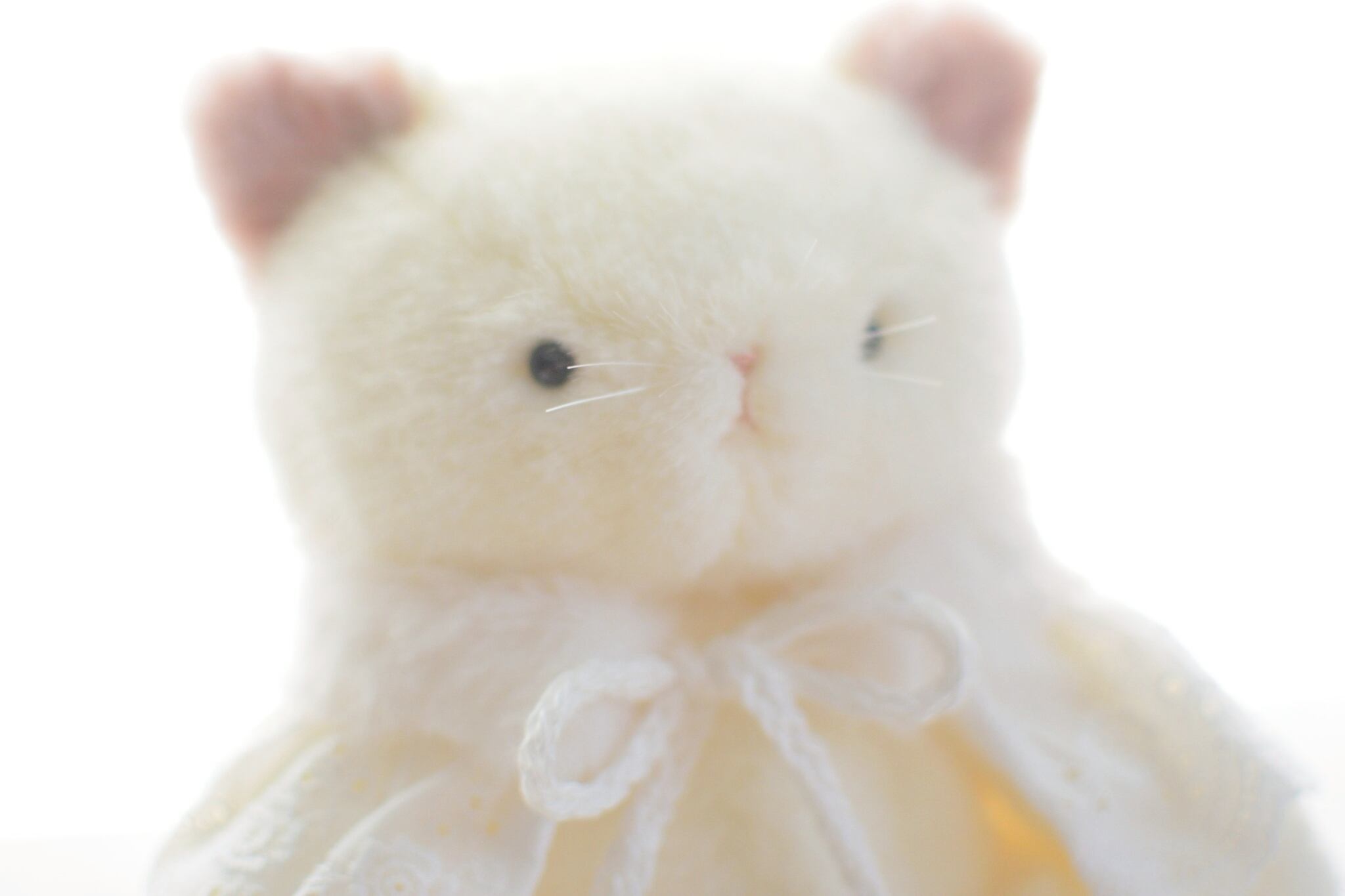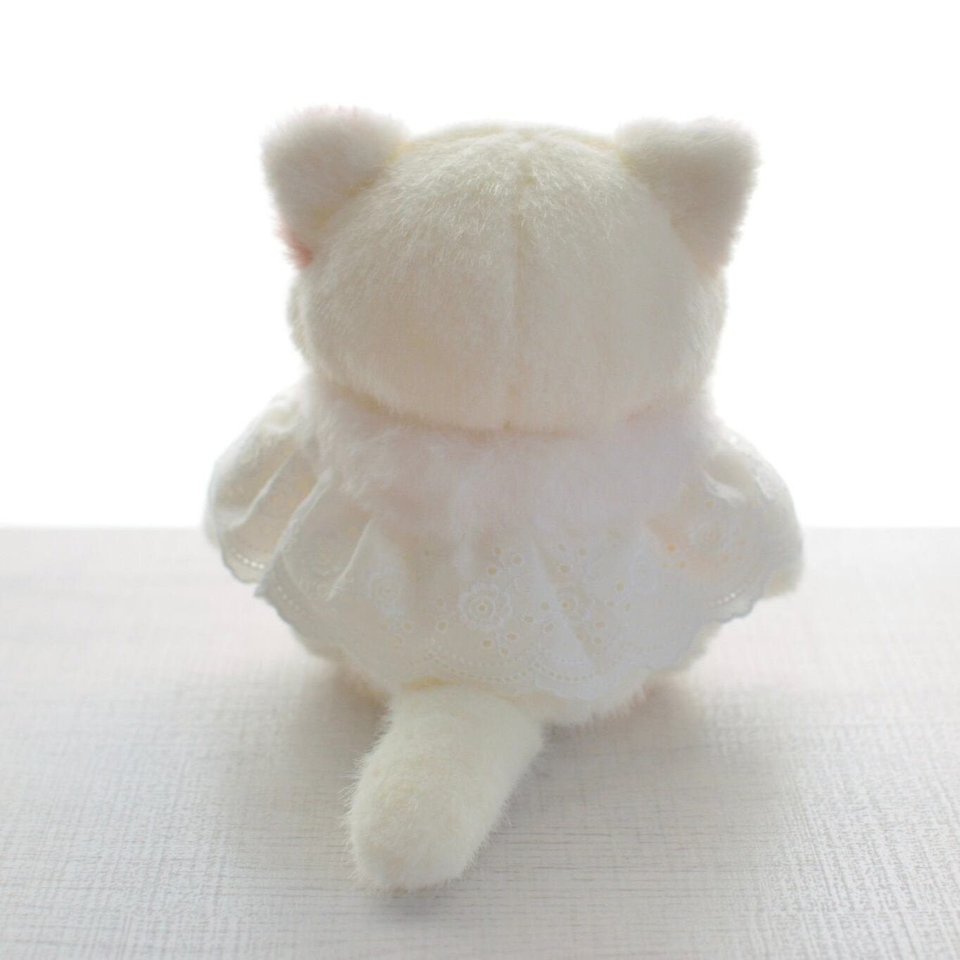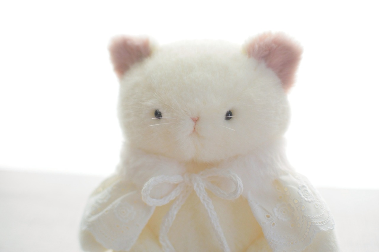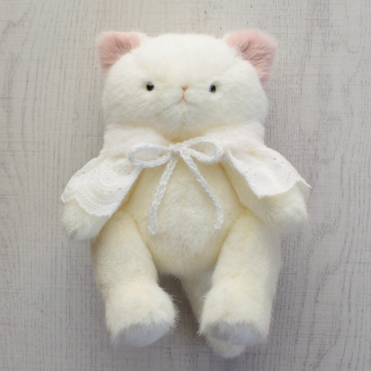 クリスマス限定のレースのケープを着けたしろねこです。 手足がジョイントで動きます。 約22cm お座り時は約17cm ケープは着脱できます。 1匹のみの販売です。