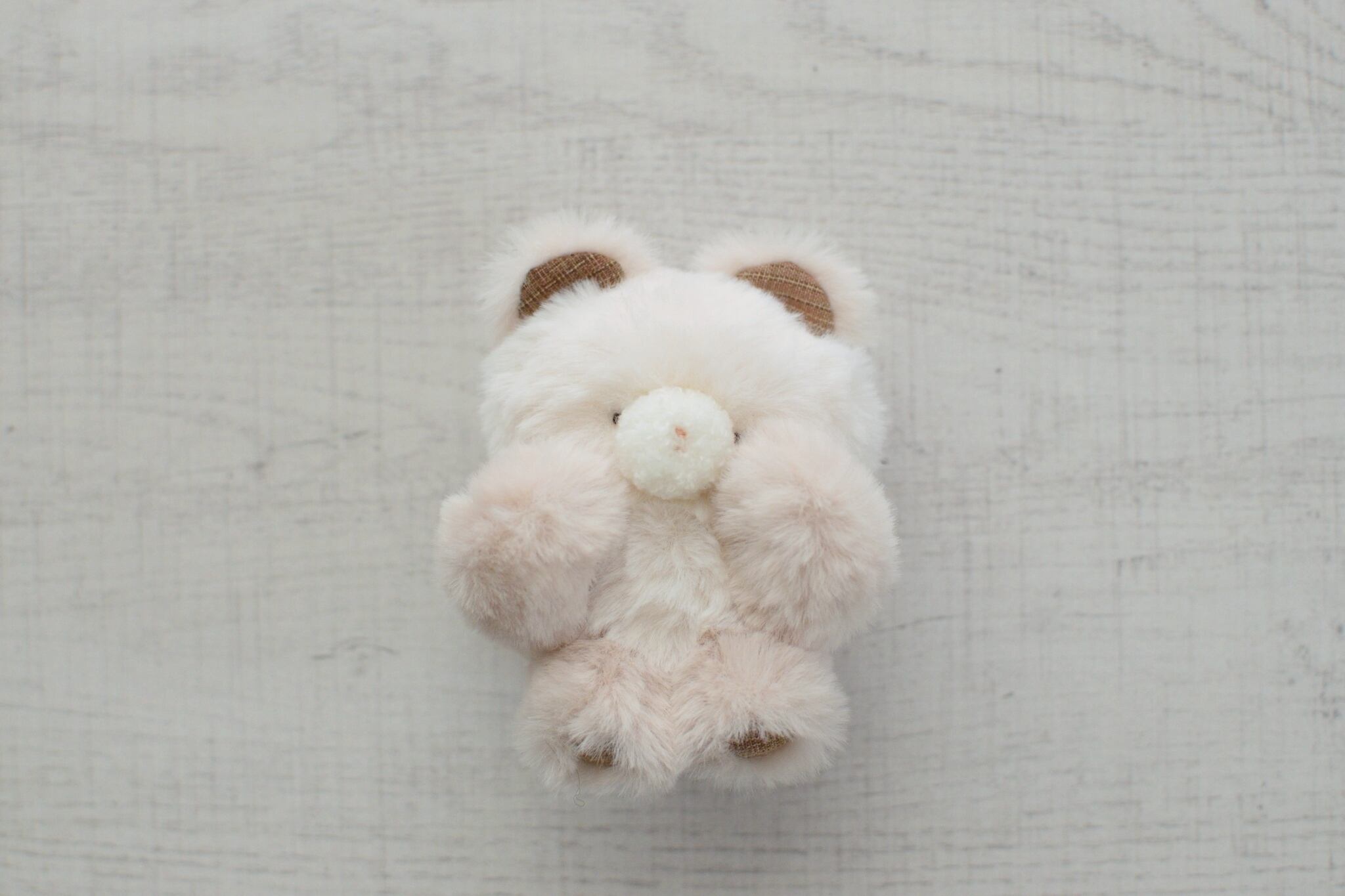 お耳のチェック柄の生地がチャームポイントの子グマです